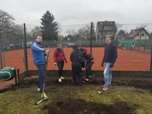 Die Hecke vor dem Platz 5 wurde entfernt, so dass auf der Wiese in der neuen Saison Bänke stehen können und so bei Turnieren und im Training freie Sicht auf das Spielgeschehen besteht.