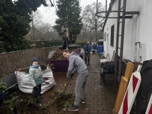 Zum Schluss gab es auch noch die verdiente Verpflegung, so dass jeder den Nachmittag gestärkt genießen konnte. Wir waren sehr erfolgreich, der 5m³ Container war gestrichen voll und auch die Straße wurde vom Laub befreit und konnte sich wieder sehen lassen.