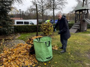 Zum Schluss gab es auch noch die verdiente Verpflegung, so dass jeder den Nachmittag gestärkt genießen konnte. Wir waren sehr erfolgreich, der 5m³ Container war gestrichen voll und auch die Straße wurde vom Laub befreit und konnte sich wieder sehen lassen.