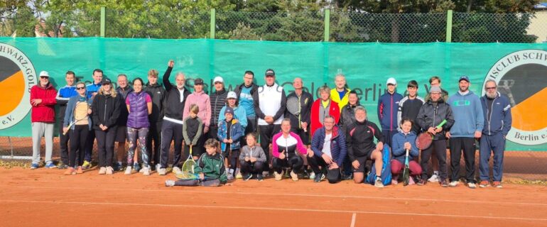 Hallo Sportis vom TC Schwarz Gold, das Schleifchenturnier zum Saisonabschluss war erneut ein voller Erfolg. 37 Teilnehmer, davon 10 Kinder haben nochmal alles gegeben und hatten sichtlich Spaß. Das Wetter spielte mit, die Laune war gut und es gab keine Verletzten… die Plätze: 1. Annette Gawer, 2. Markus Kretschmer, 3. Hans-Peter Wolf Die Kinder bereichern das […]